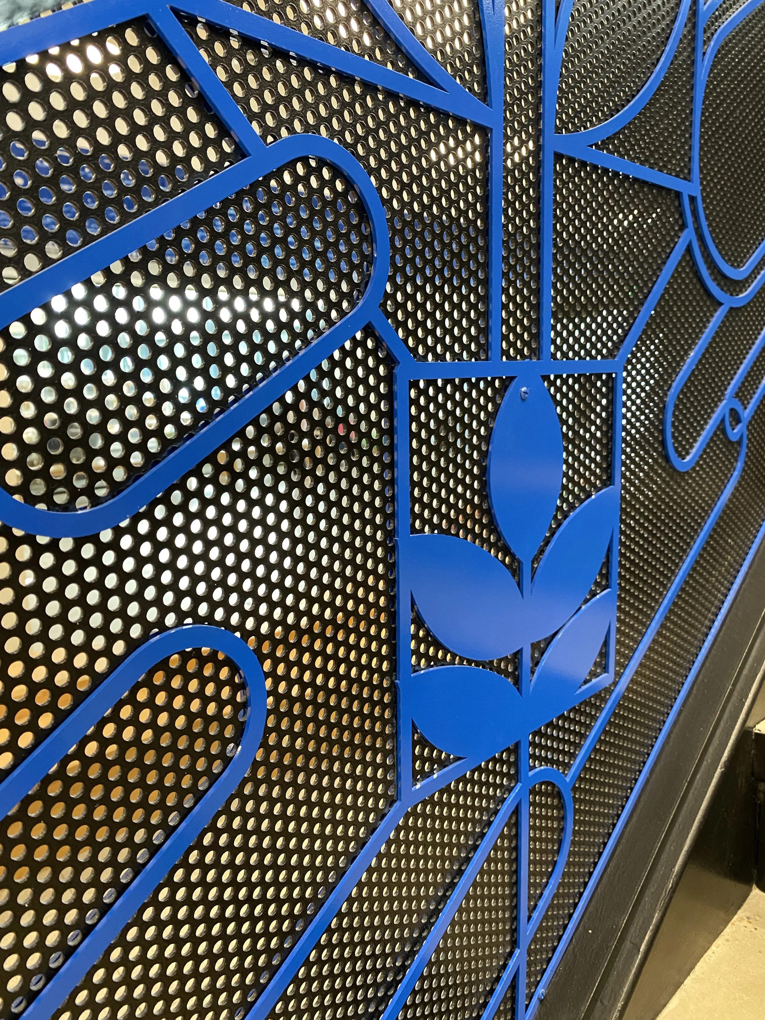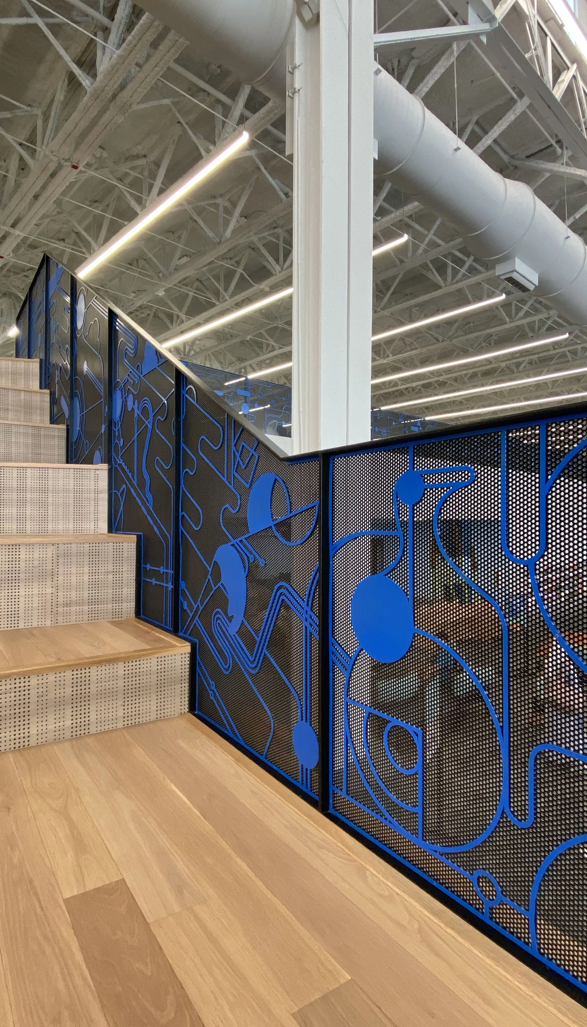 The stair guardrails introduced a more complex geometry, requiring select illustrations to be thoughtfully adapted in order to preserve the fluidity of the overall composition.