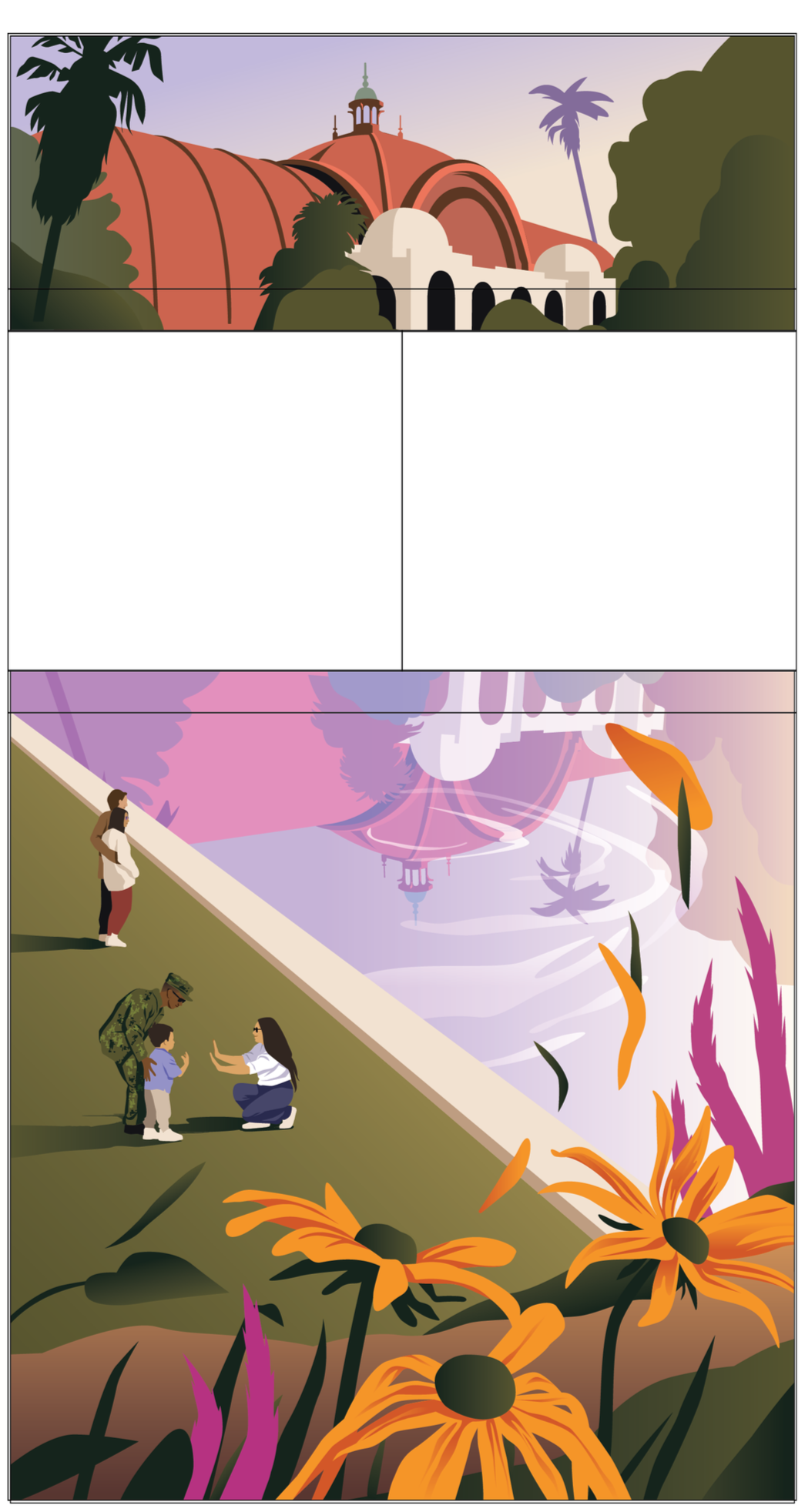 After shifting to a more photo-based direction, a collage-like approach was developed that emphasizes color and form, with minimal sketch-like linework layered on top to create a fresh, contemporary feel.