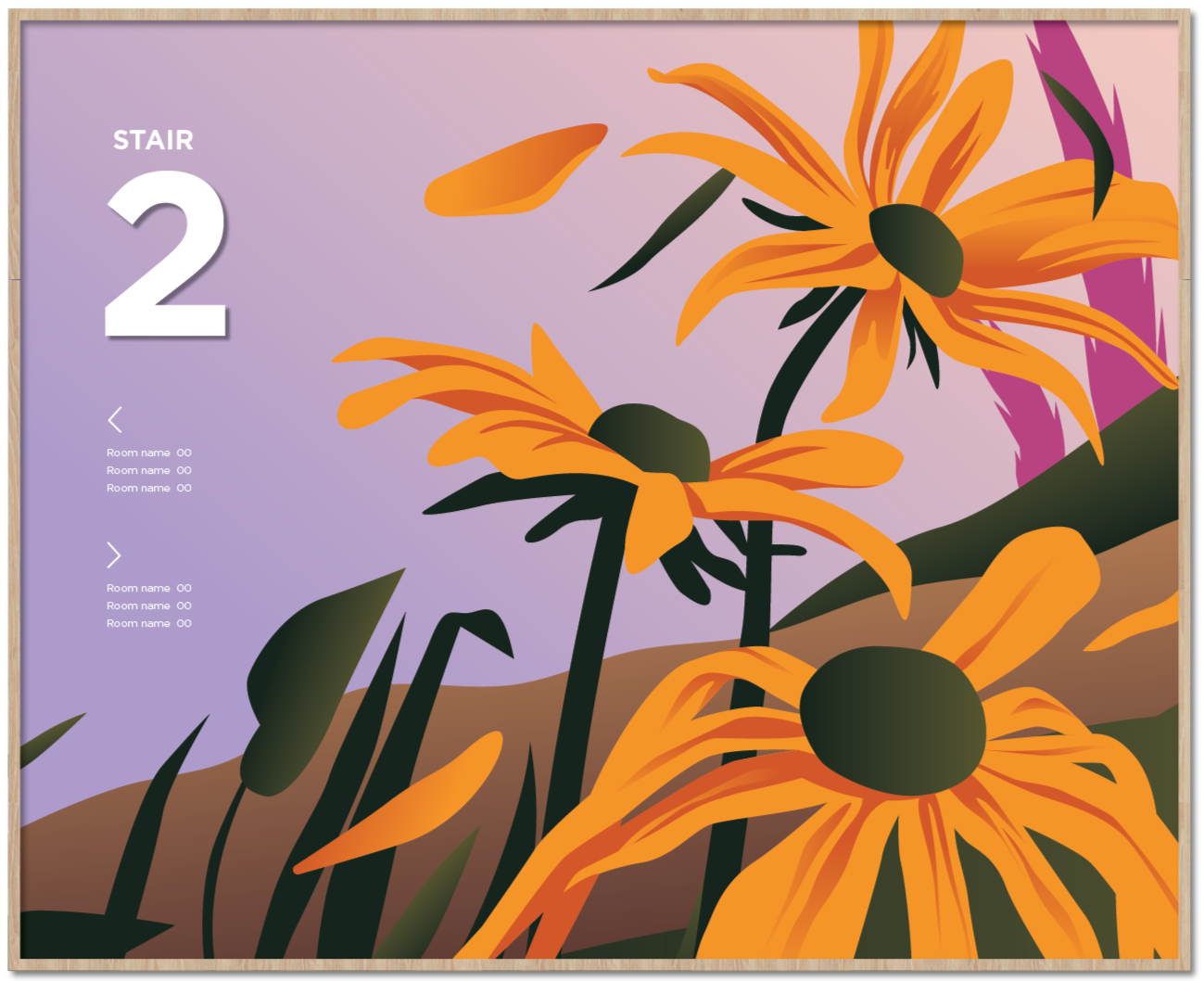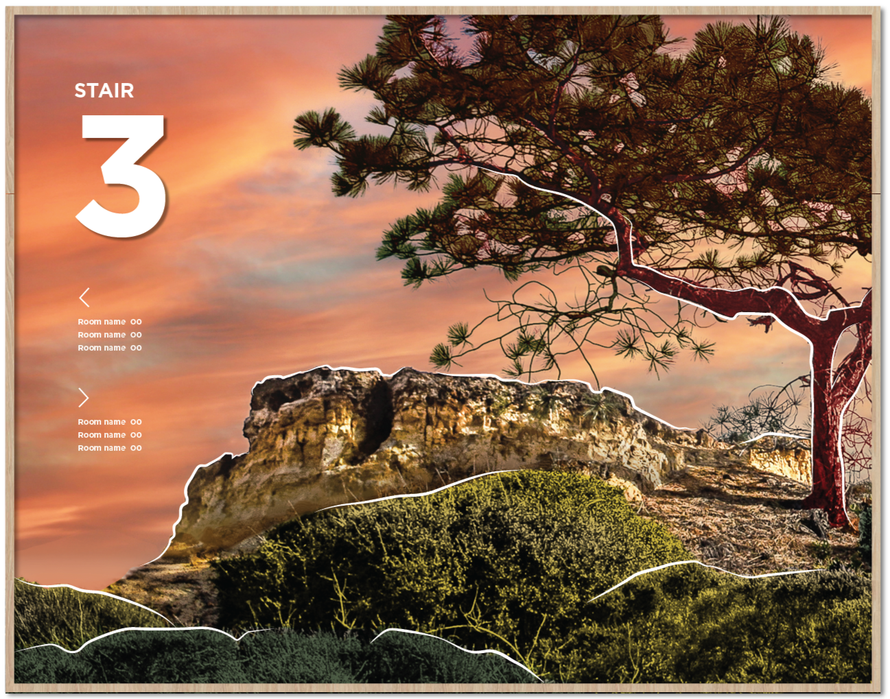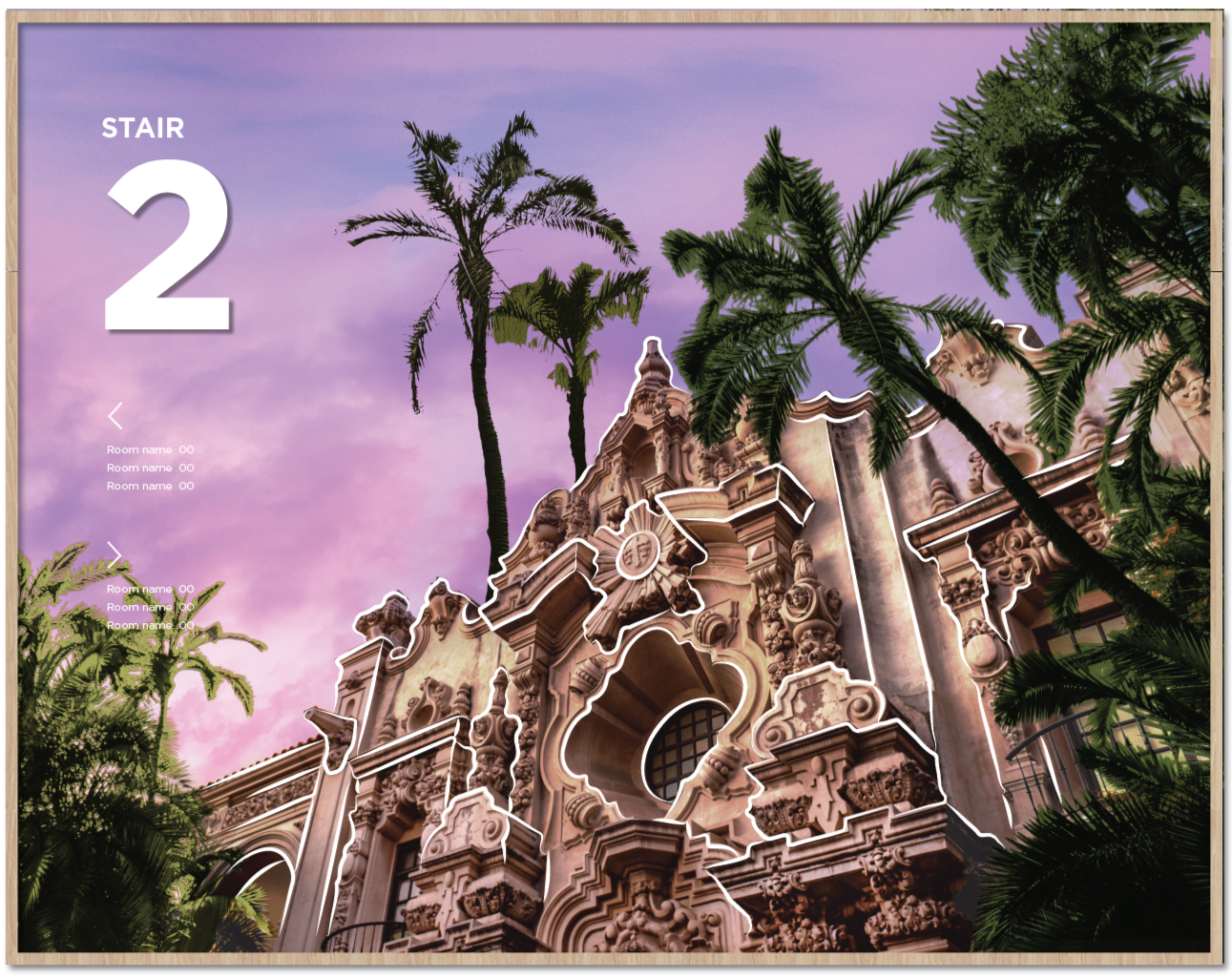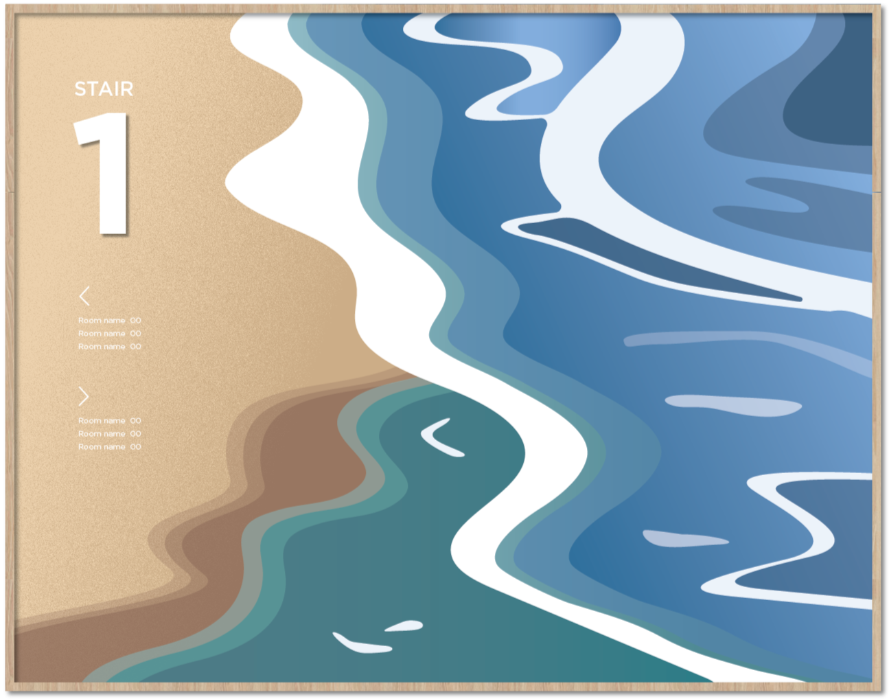 Four distinct stair locations, each drawing inspiration from the varied landscapes of San Diego. Graphics are intentionally placed at the mid-landing to suit the smaller scale of the space.