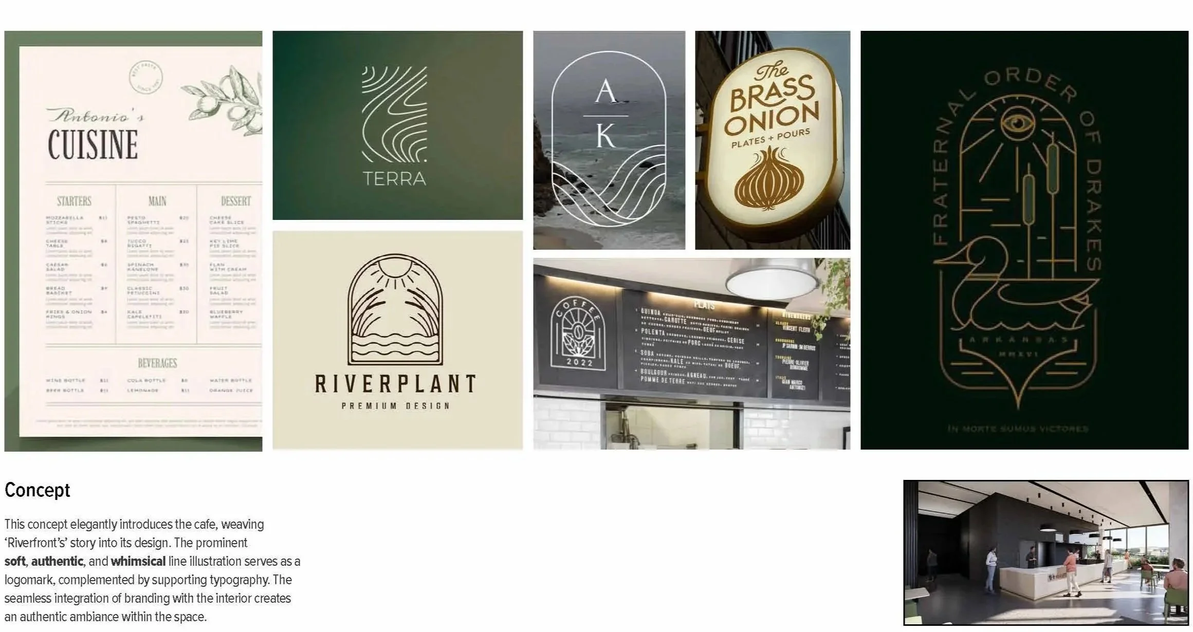 Two concept directions were explored—one understated and elegant to harmonize with the minimal interior palette, and one more expressive to cultivate a lively, welcoming environment.